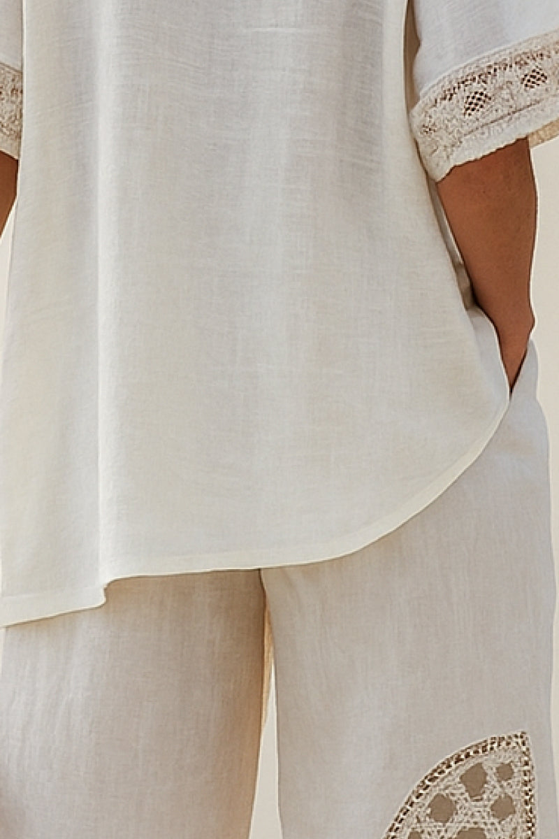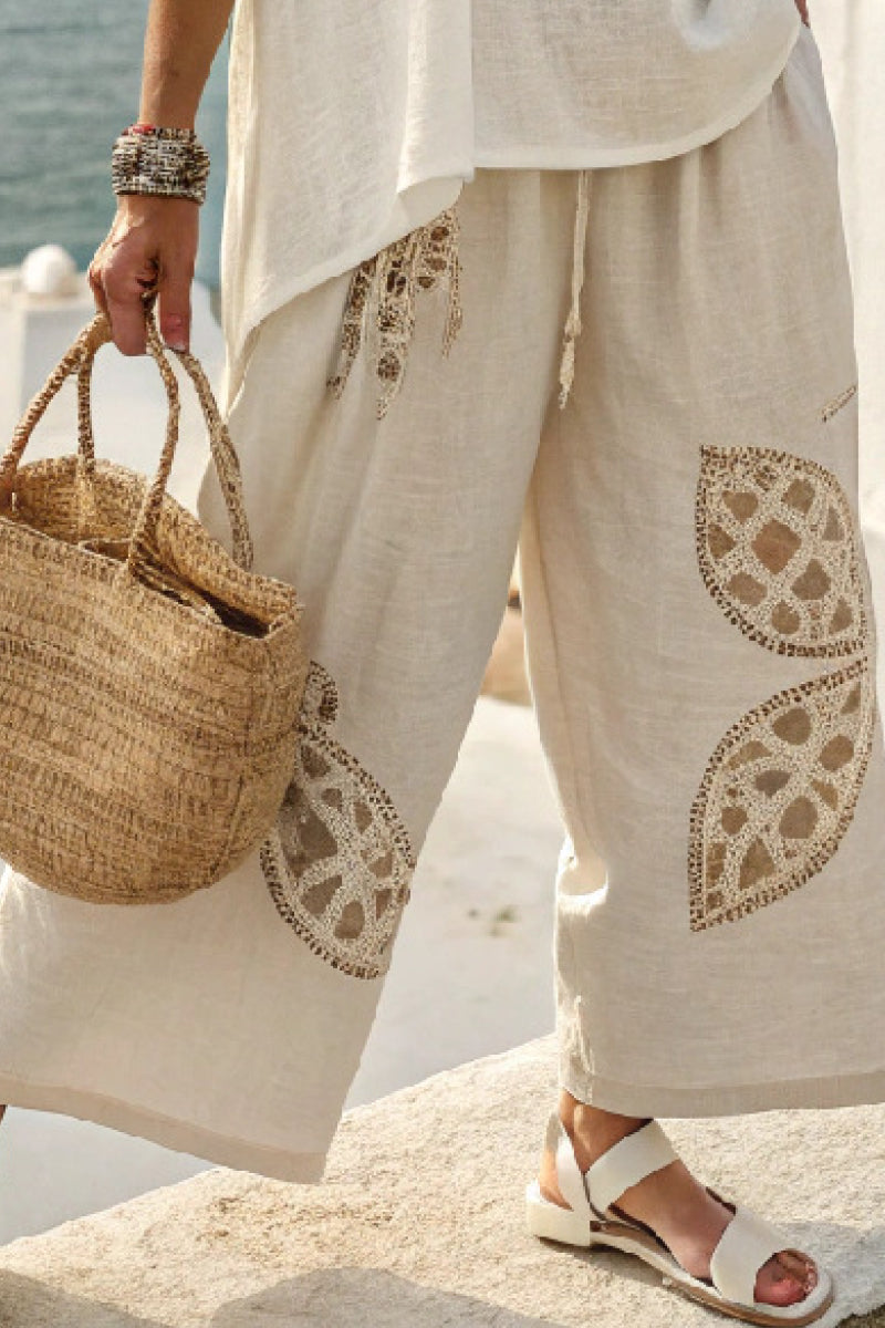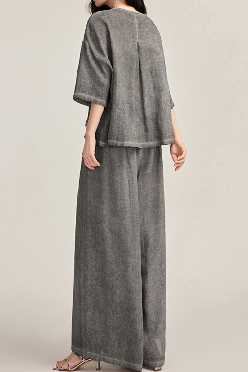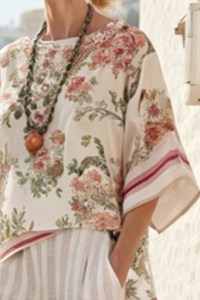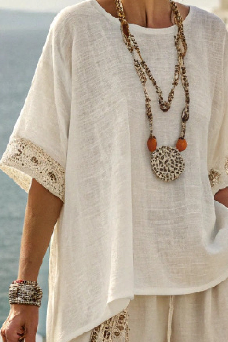 Linen and Cotton Loose Floral Short Sleeves Two-Piece Set