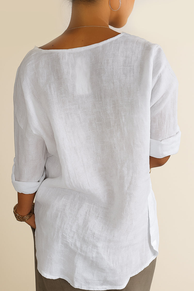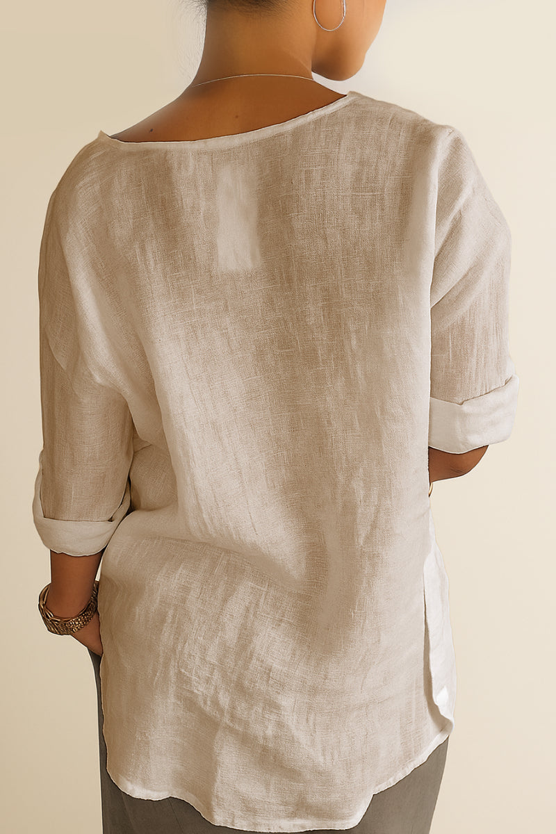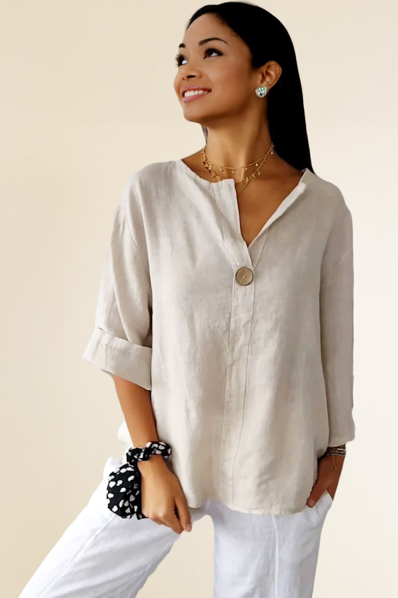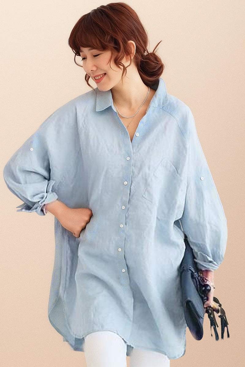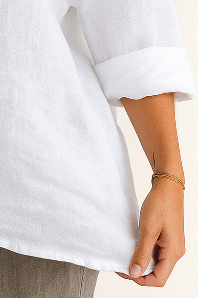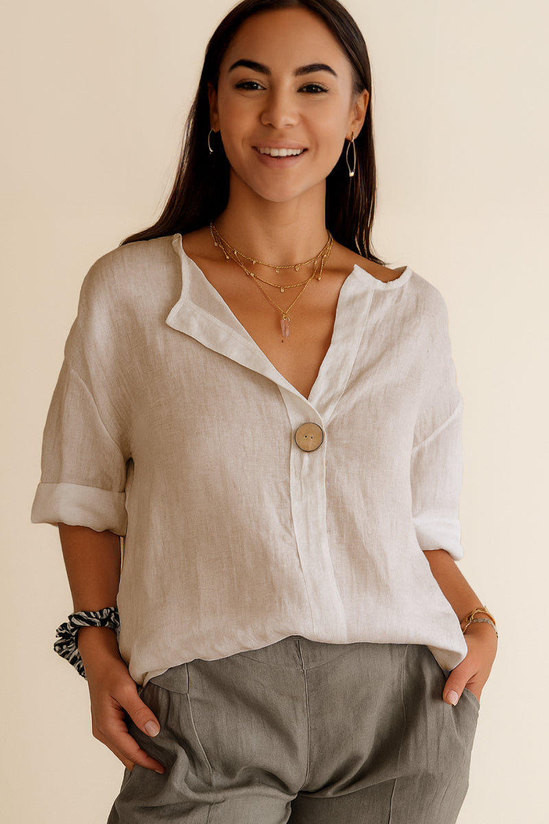 This blouse is everything I hoped it would be and more. The linen feels incredibly light and breathable, but still has that rich, textured quality that makes it feel elevated. I’m 38.5" bust, 32" waist, and 36" hips, and the size L fits perfectly.