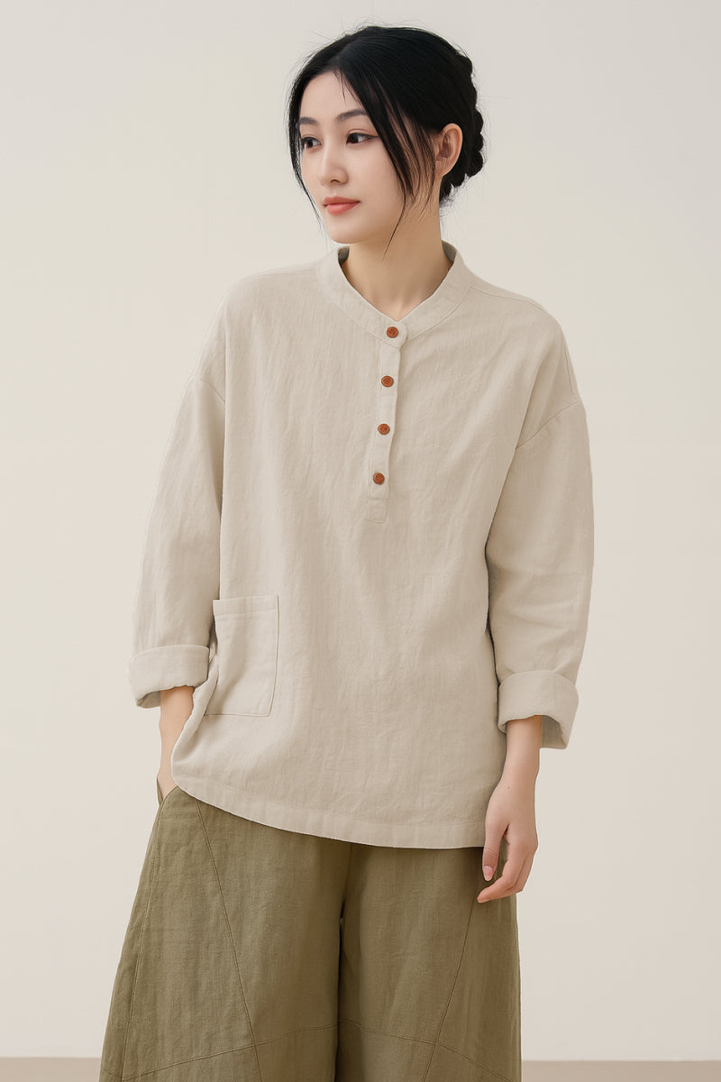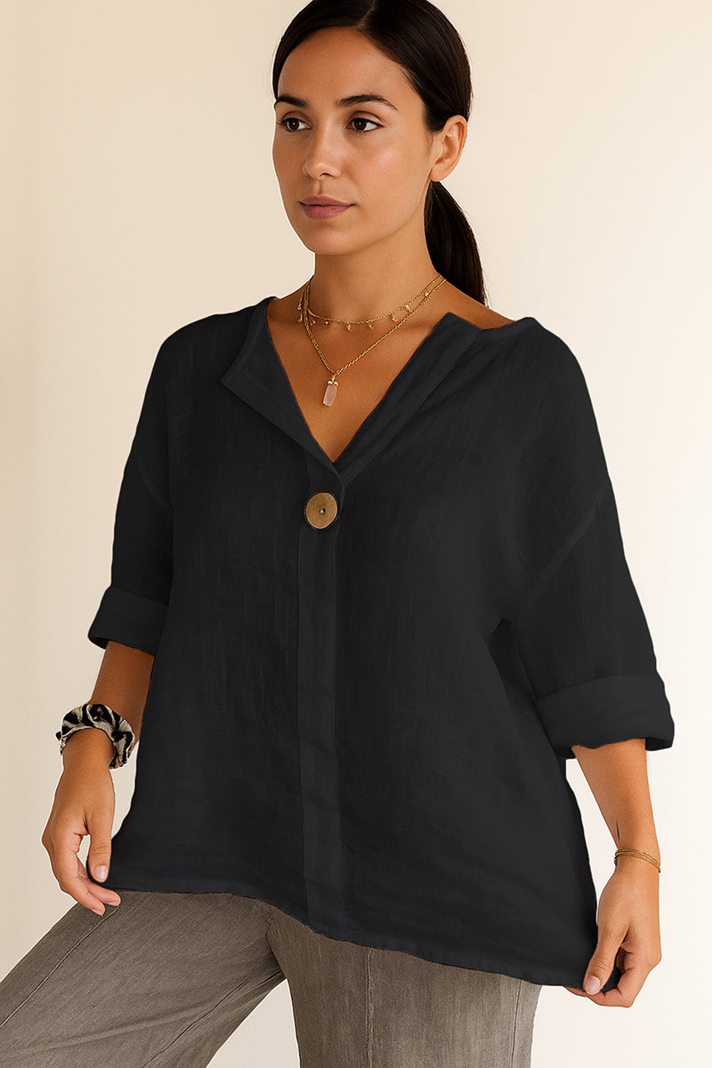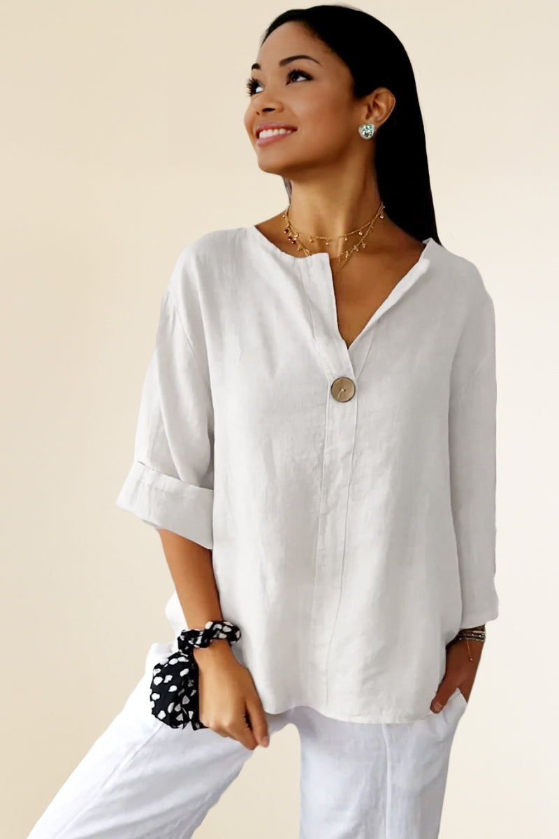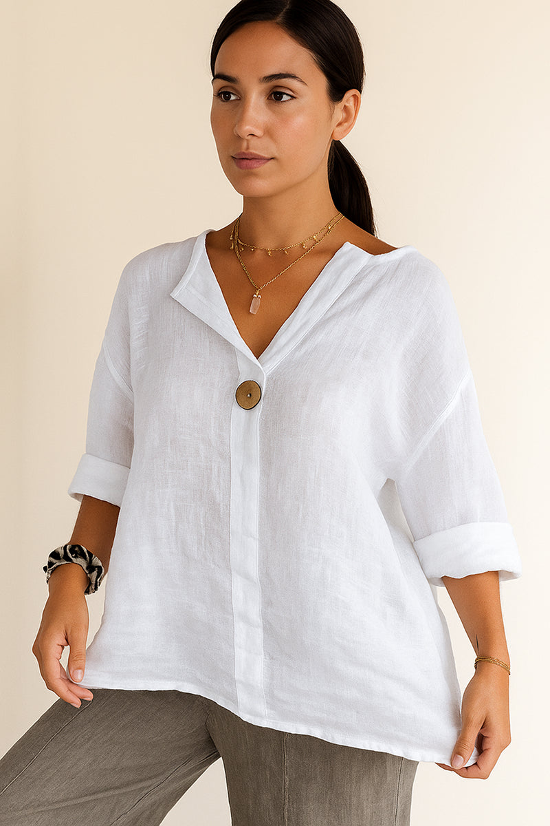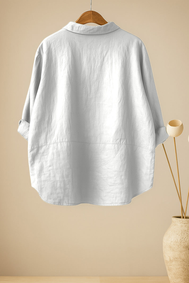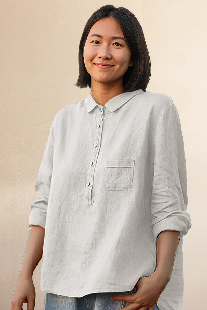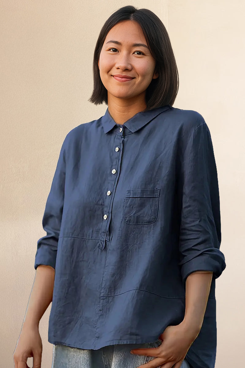 This blouse is everything I hoped it would be and more. The linen feels incredibly light and breathable, but still has that rich, textured quality that makes it feel elevated. I’m 38.5" bust, 32" waist, and 36" hips, and the size L fits perfectly.