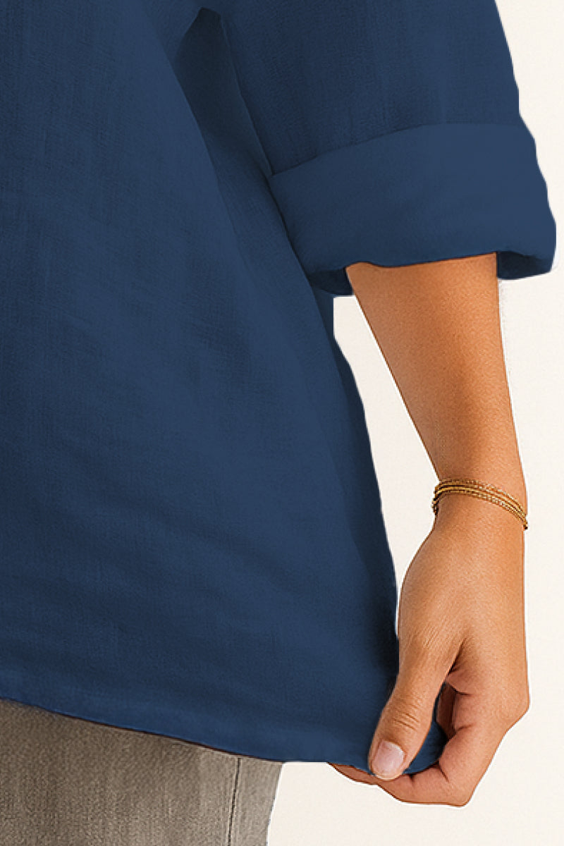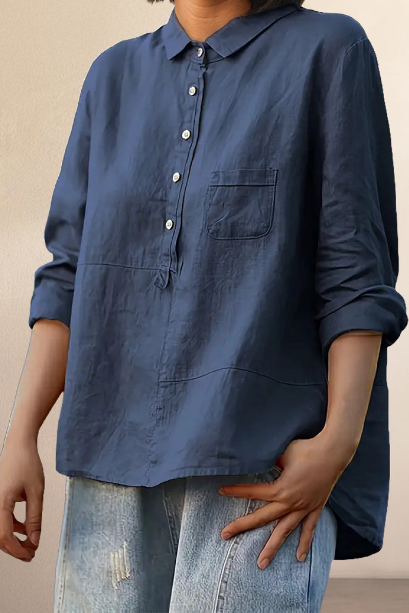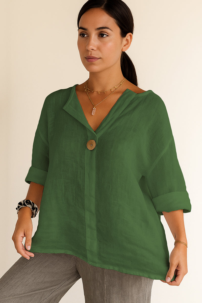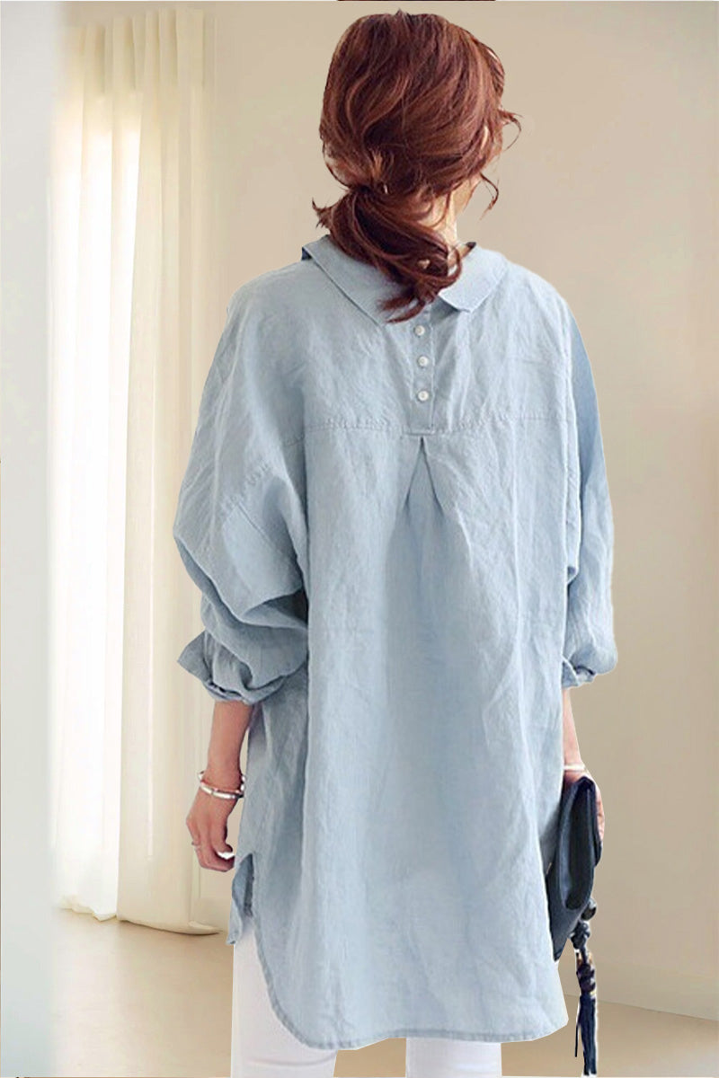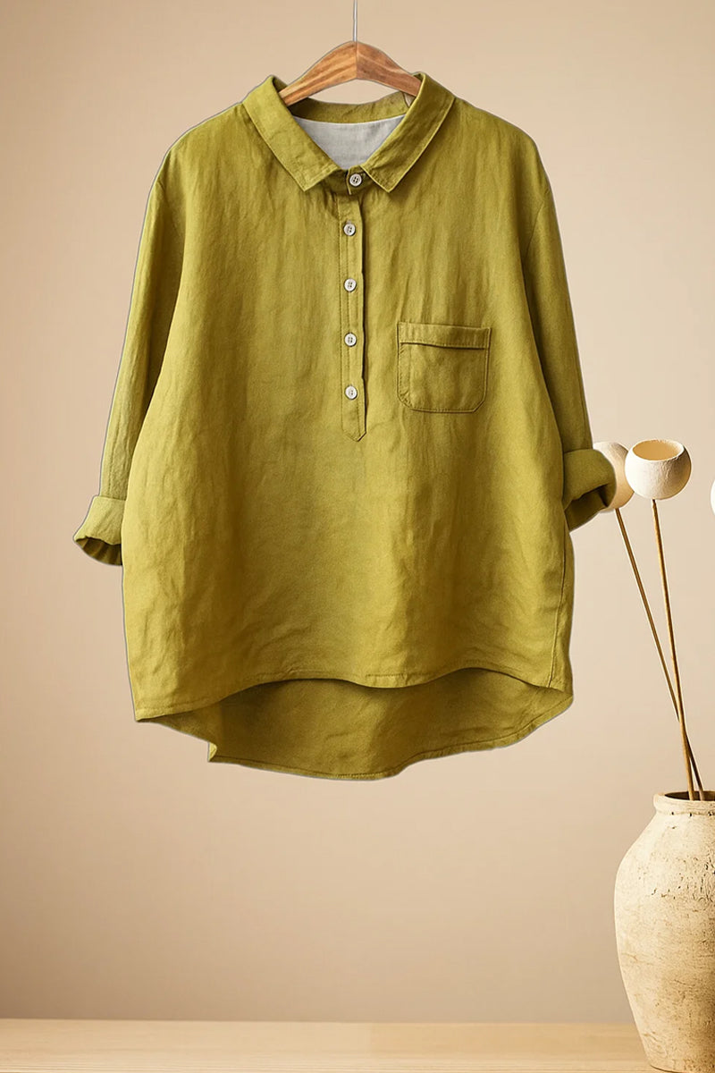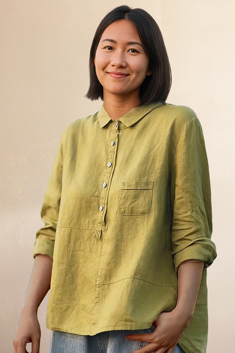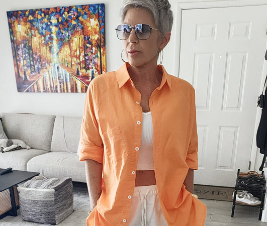 This blouse is everything I hoped it would be and more. The linen feels incredibly light and breathable, but still has that rich, textured quality that makes it feel elevated. I’m 38.5" bust, 32" waist, and 36" hips, and the size L fits perfectly.
