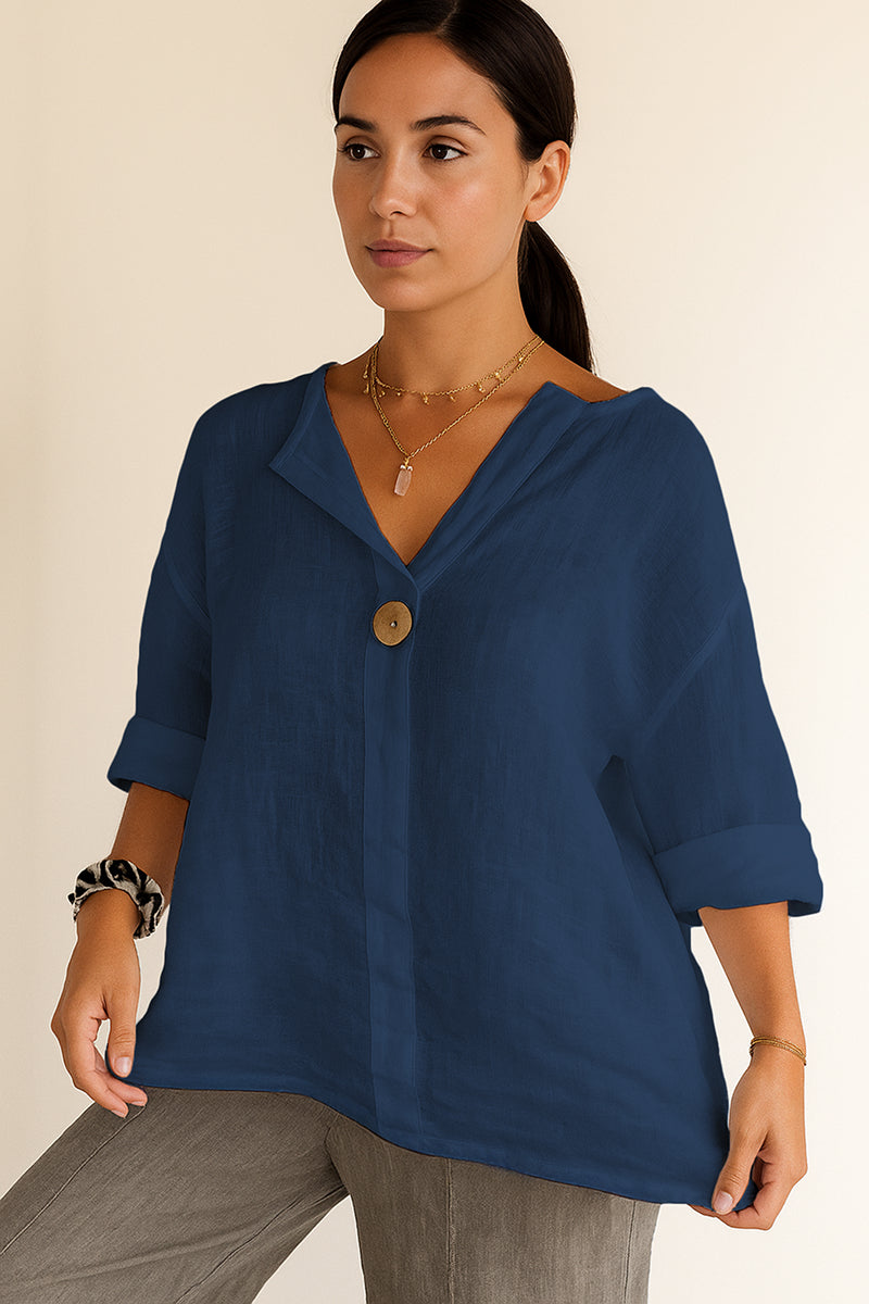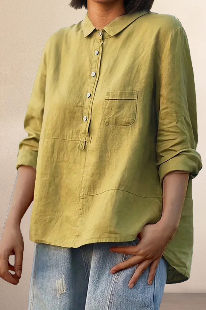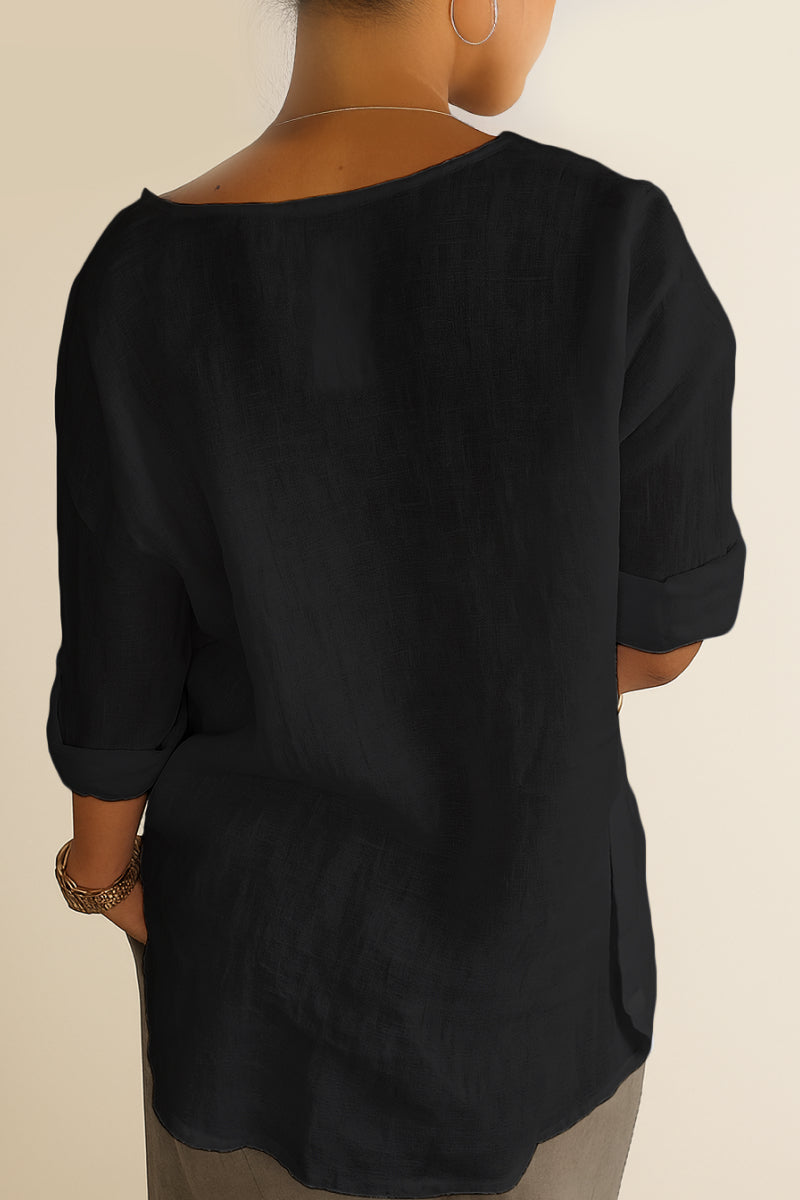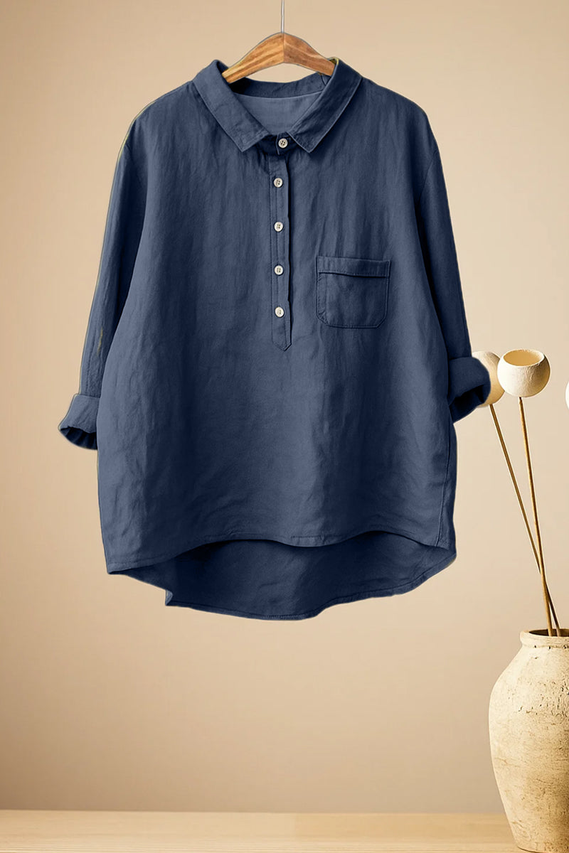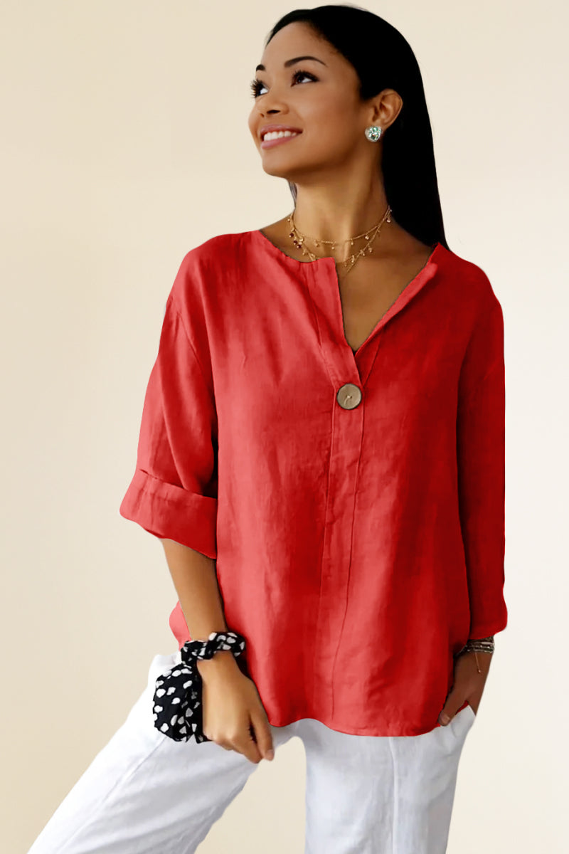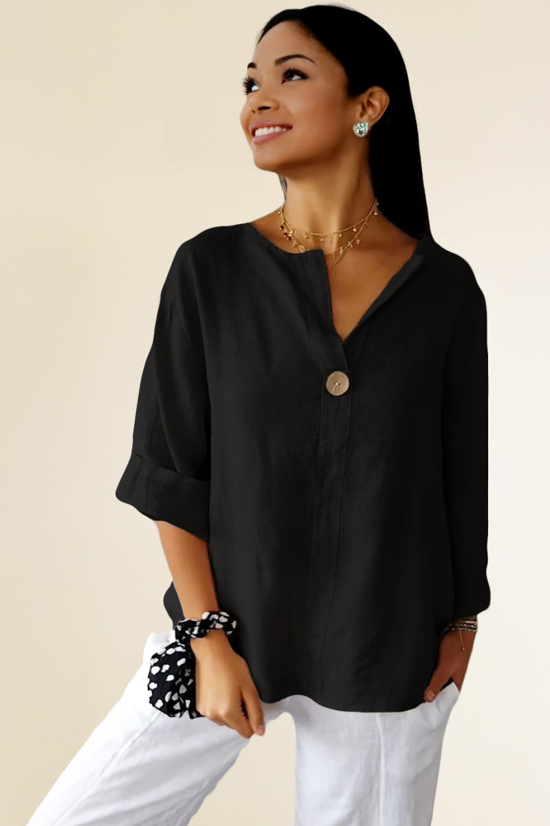 This blouse is everything I hoped it would be and more. The linen feels incredibly light and breathable, but still has that rich, textured quality that makes it feel elevated. I’m 38.5" bust, 32" waist, and 36" hips, and the size L fits perfectly.