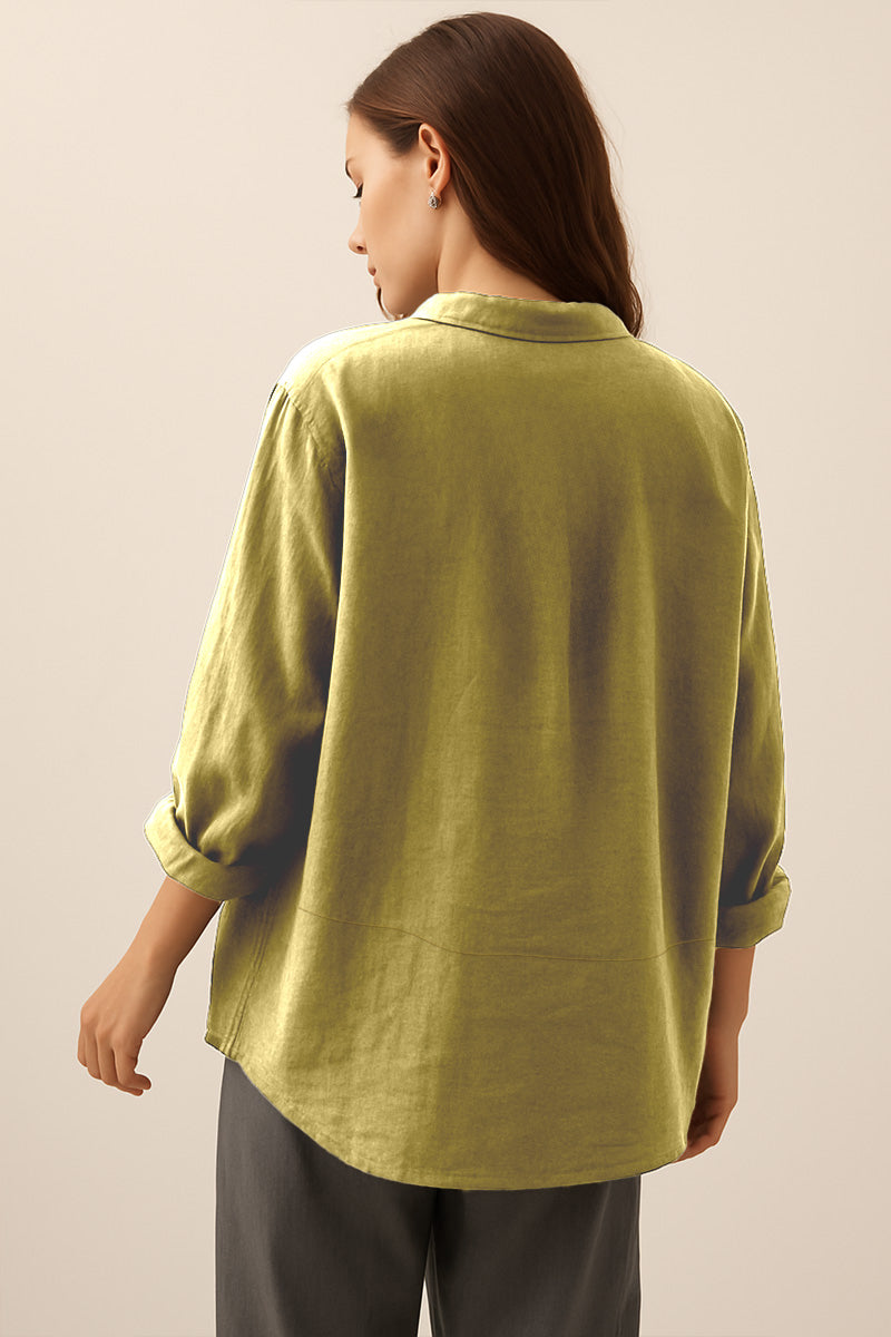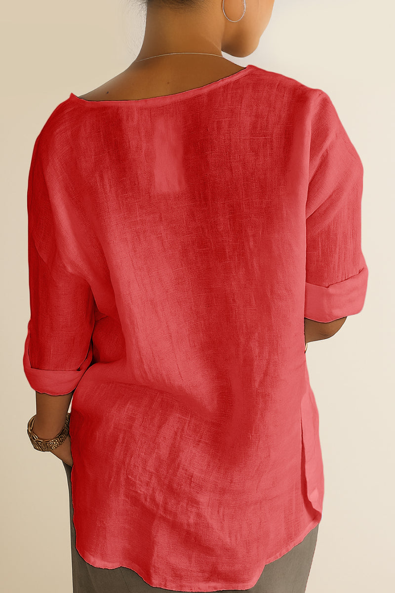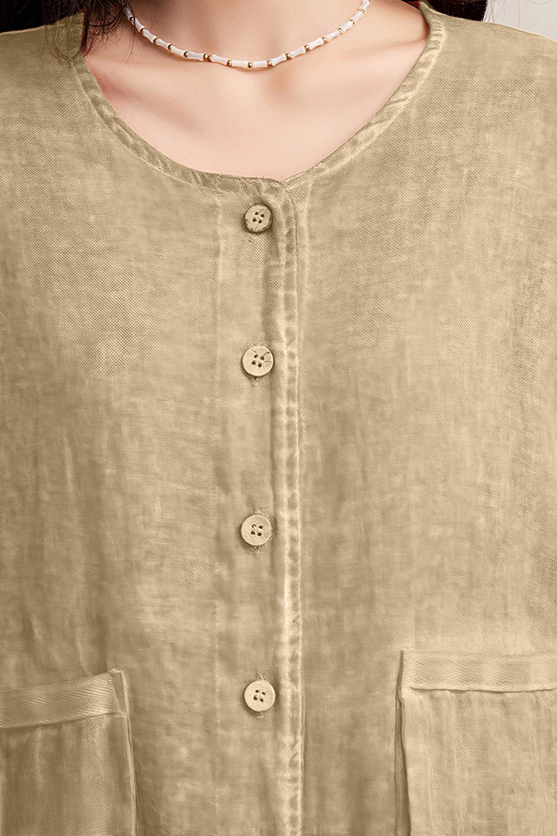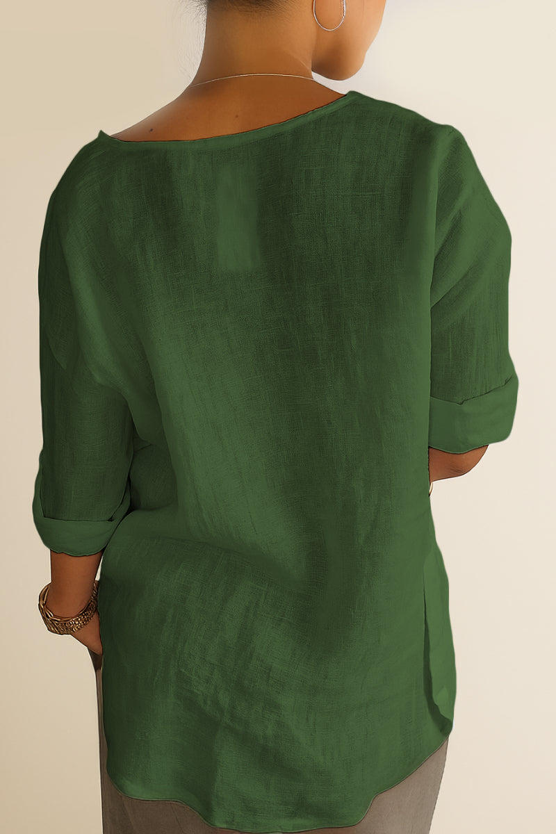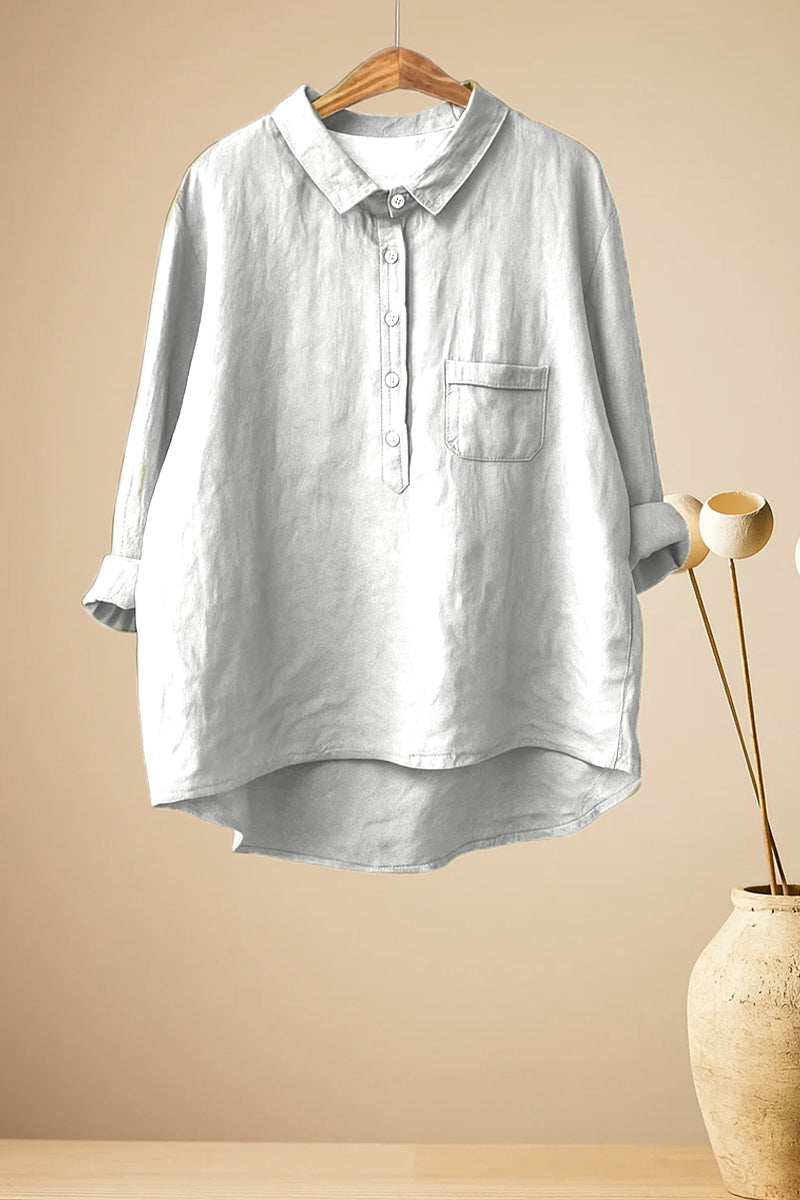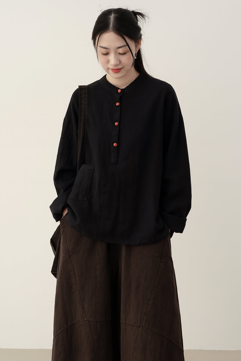 This blouse is everything I hoped it would be and more. The linen feels incredibly light and breathable, but still has that rich, textured quality that makes it feel elevated. I’m 38.5" bust, 32" waist, and 36" hips, and the size L fits perfectly.