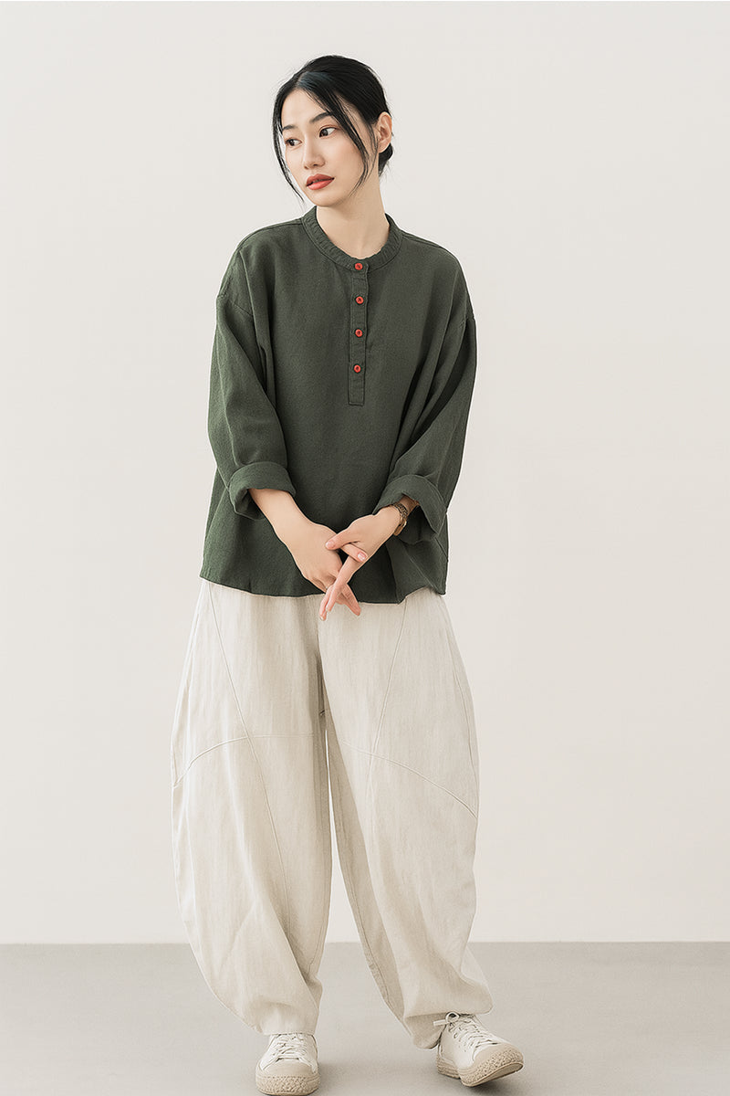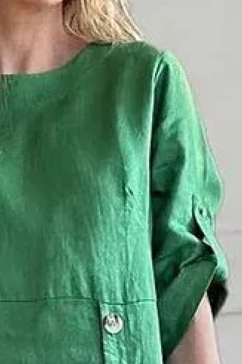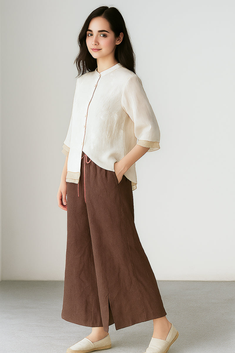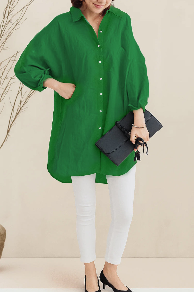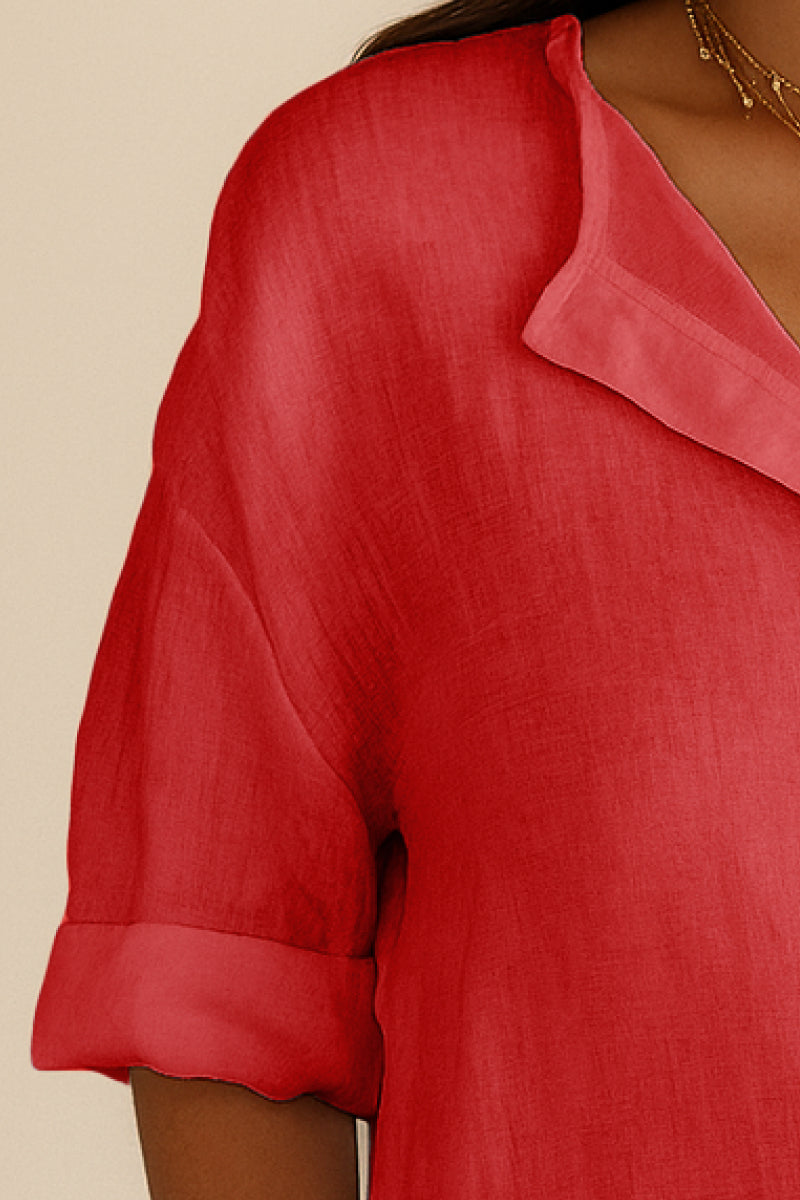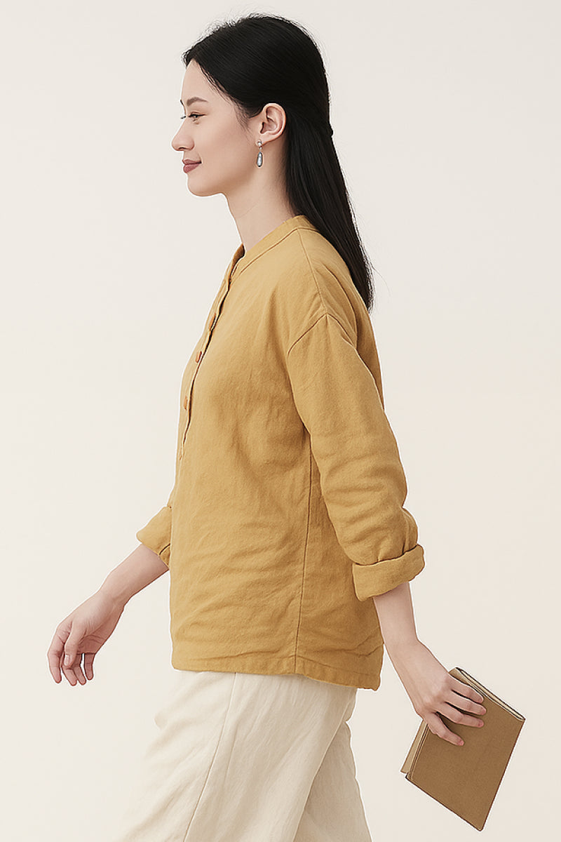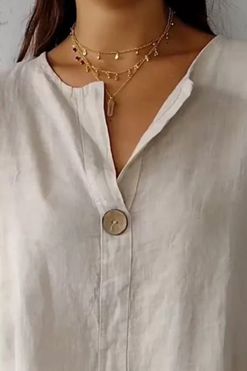 This blouse is everything I hoped it would be and more. The linen feels incredibly light and breathable, but still has that rich, textured quality that makes it feel elevated. I’m 38.5" bust, 32" waist, and 36" hips, and the size L fits perfectly.