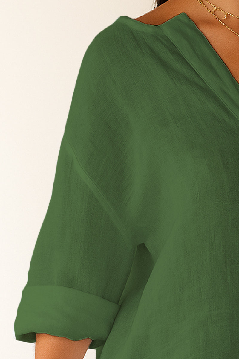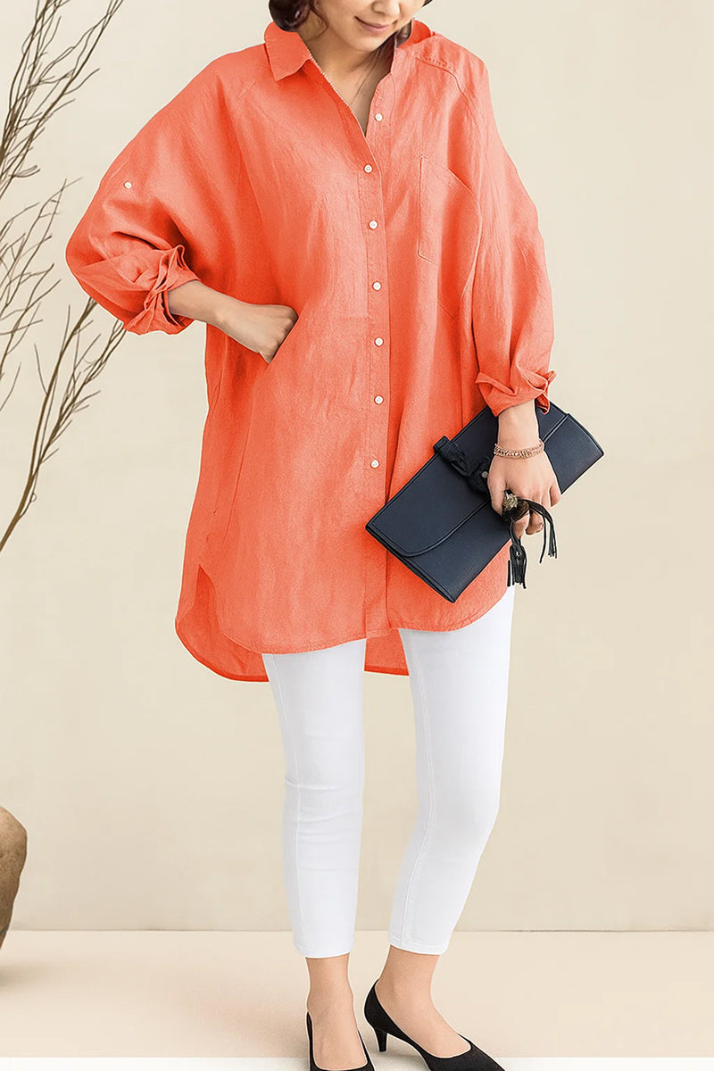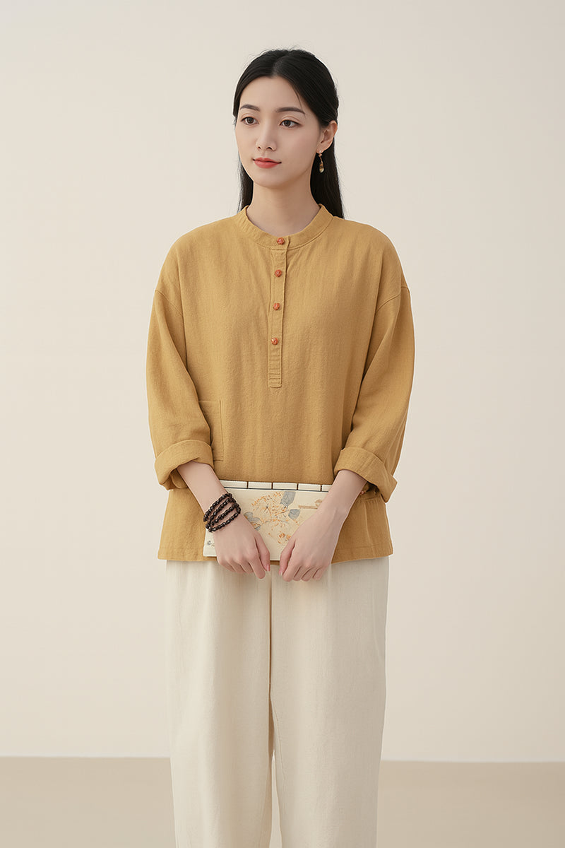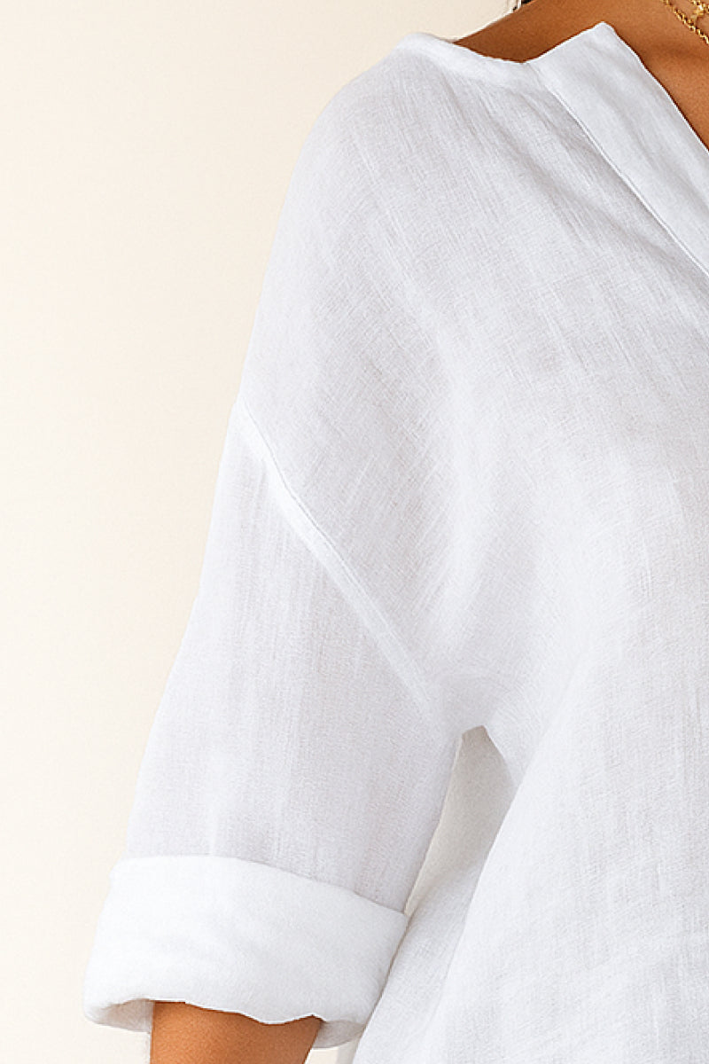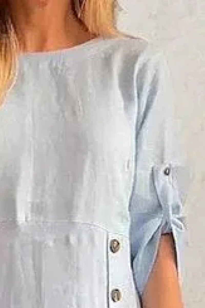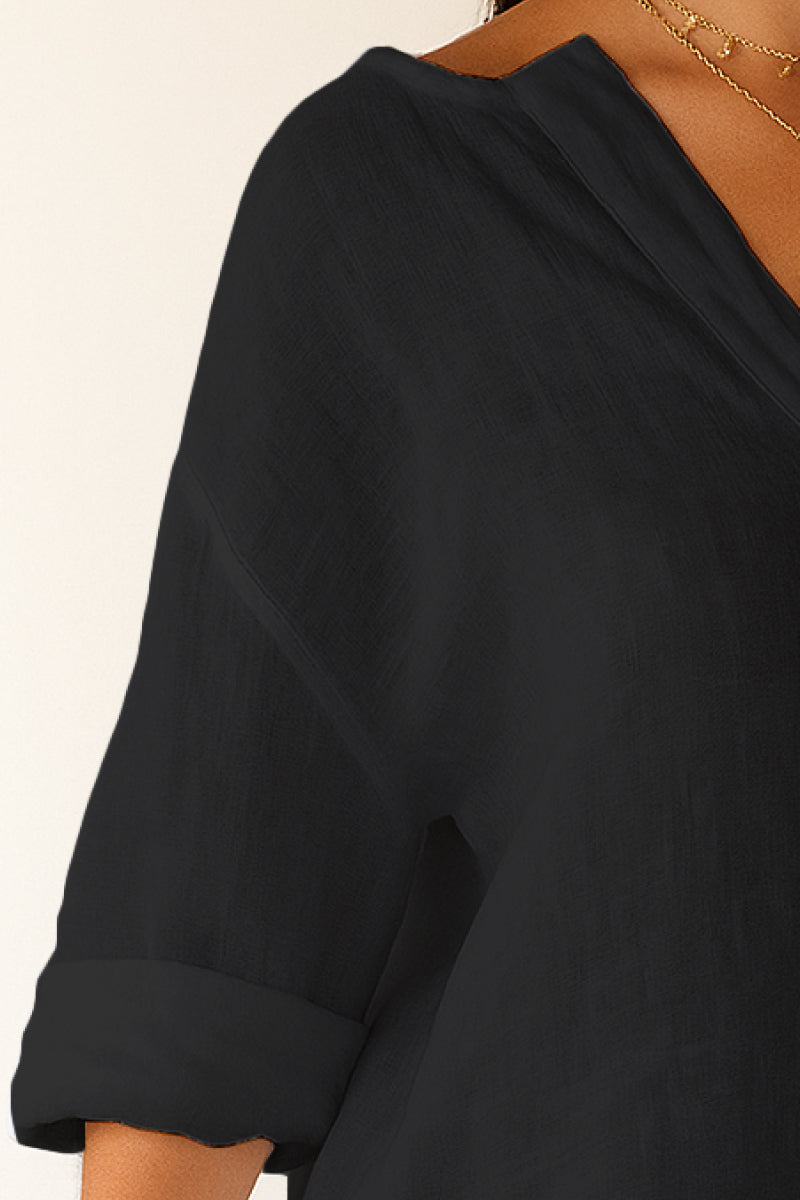 This blouse is everything I hoped it would be and more. The linen feels incredibly light and breathable, but still has that rich, textured quality that makes it feel elevated. I’m 38.5" bust, 32" waist, and 36" hips, and the size L fits perfectly.