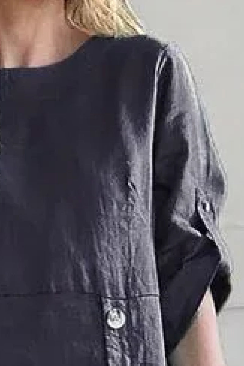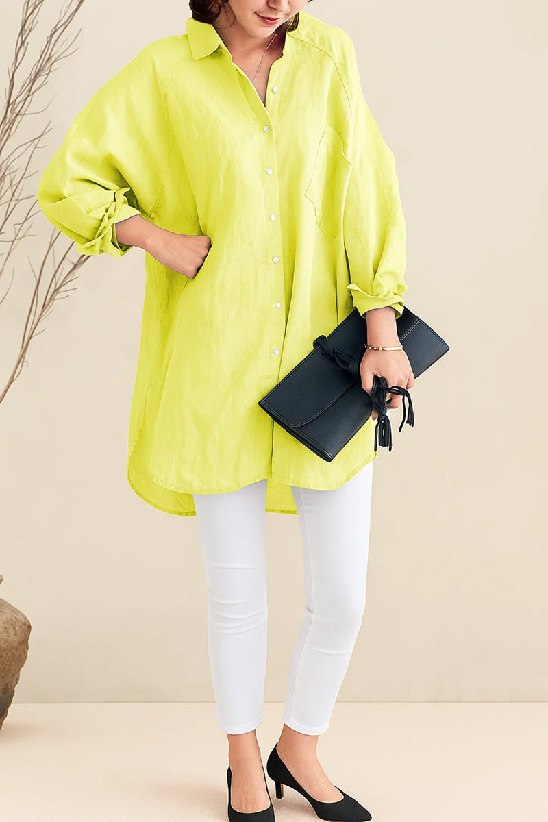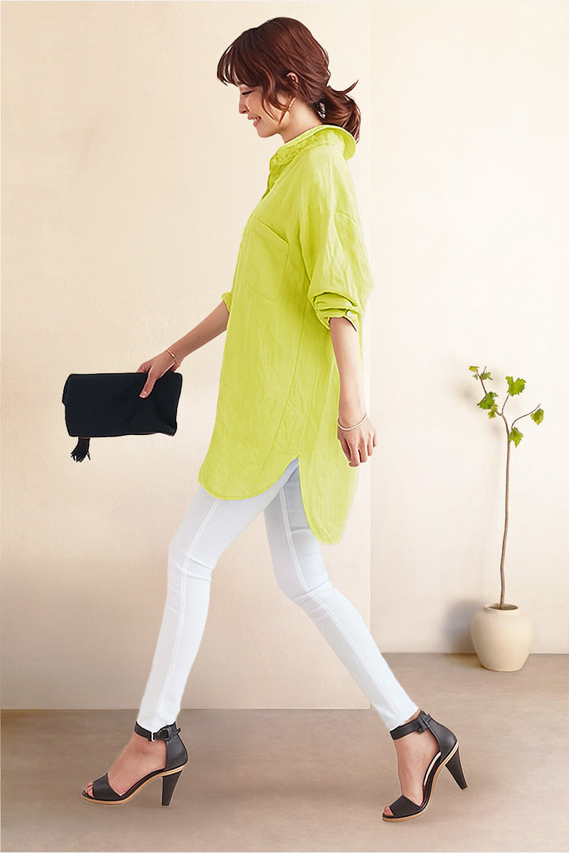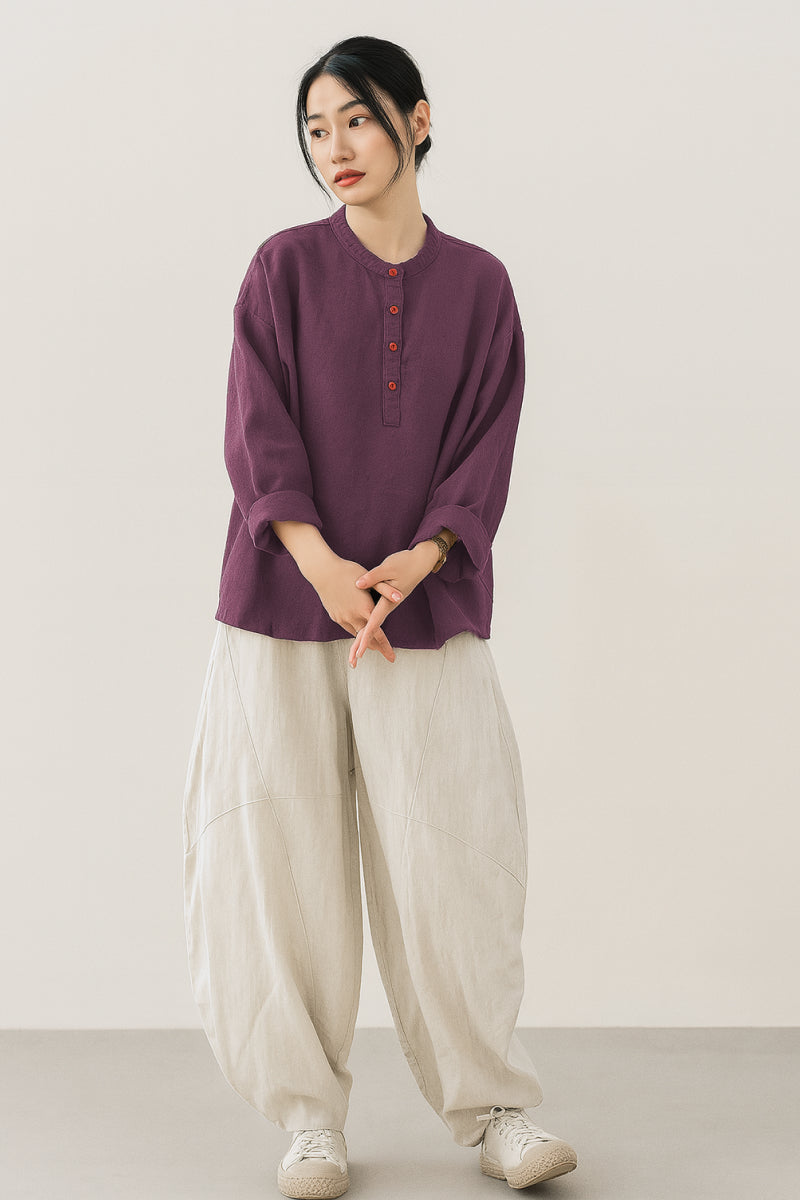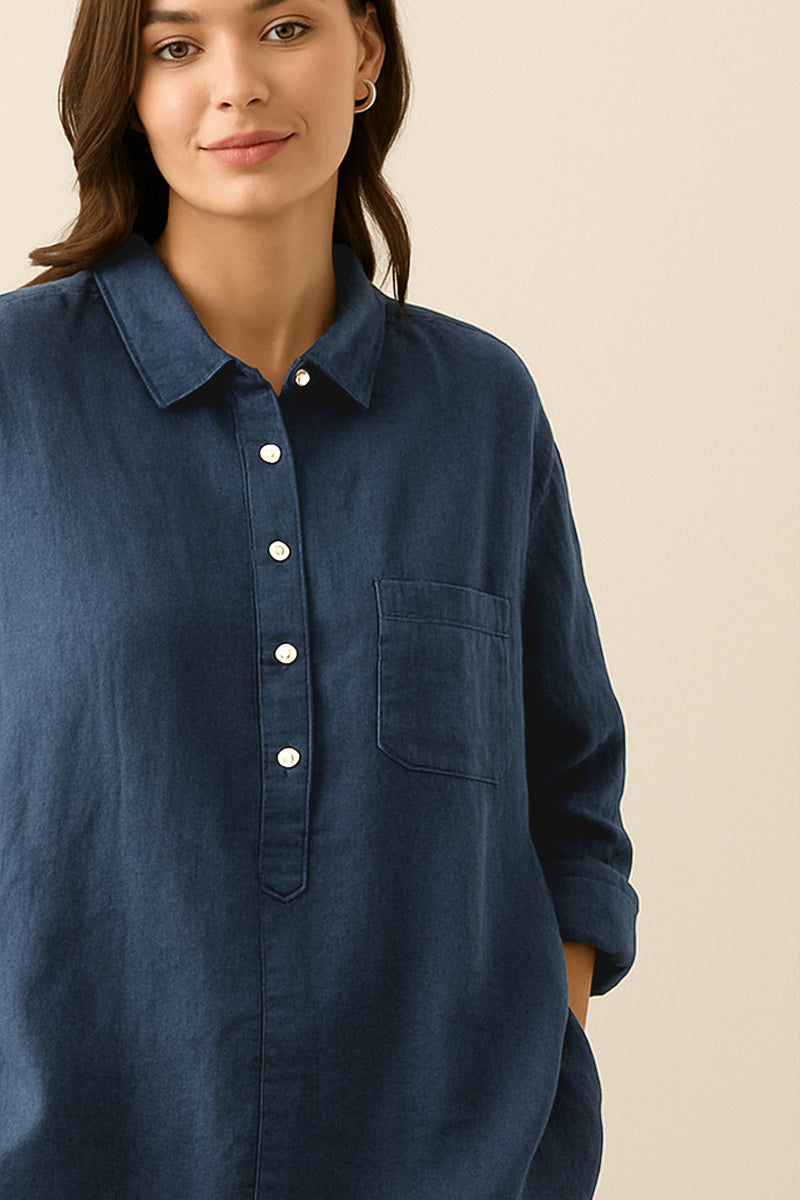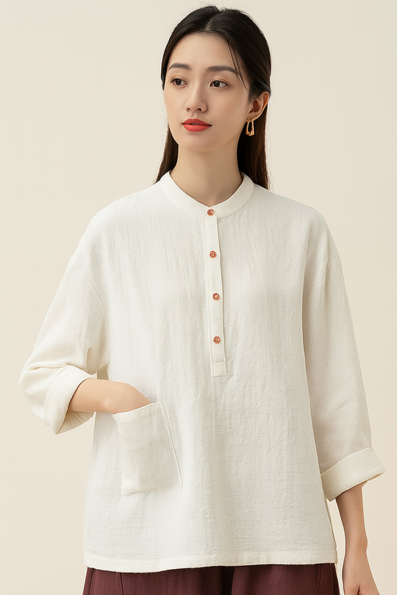 This blouse is everything I hoped it would be and more. The linen feels incredibly light and breathable, but still has that rich, textured quality that makes it feel elevated. I’m 38.5" bust, 32" waist, and 36" hips, and the size L fits perfectly.