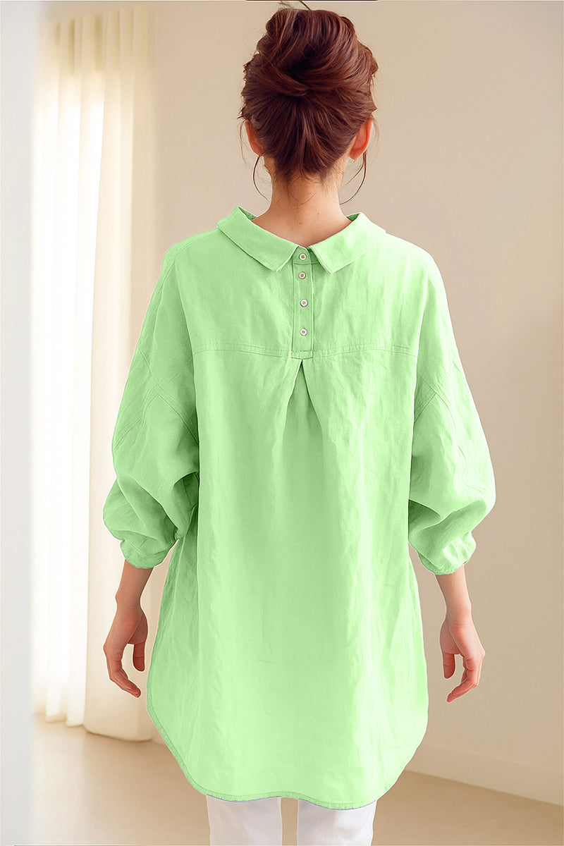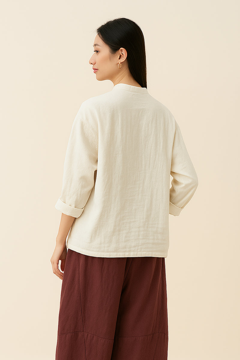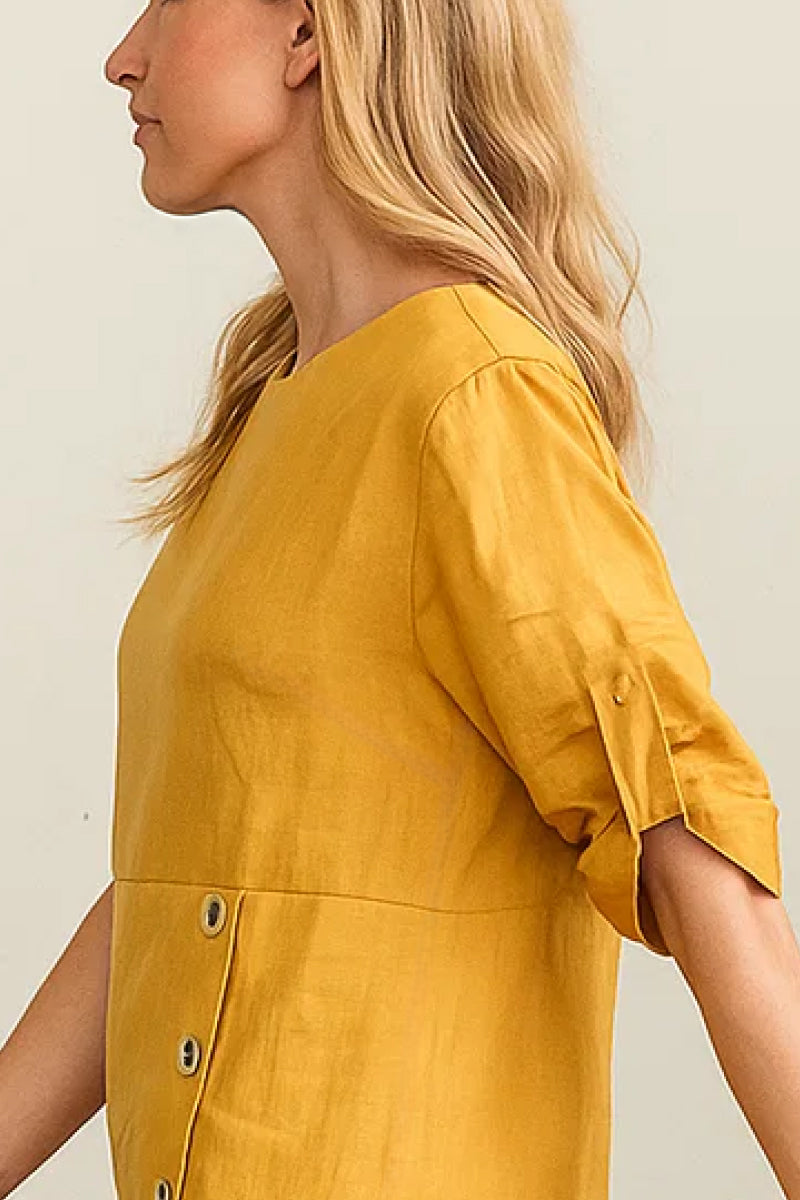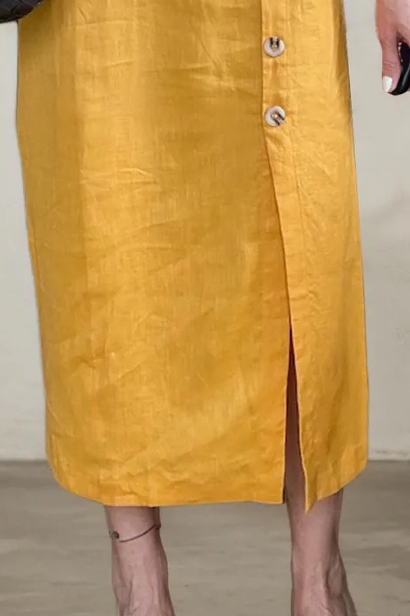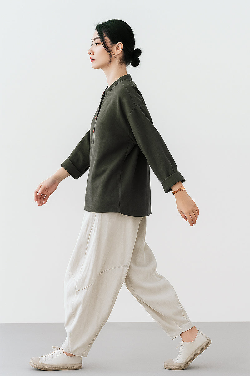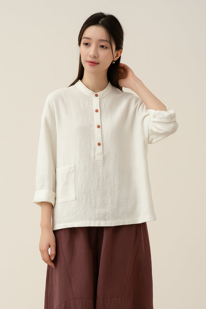 This blouse is everything I hoped it would be and more. The linen feels incredibly light and breathable, but still has that rich, textured quality that makes it feel elevated. I’m 38.5" bust, 32" waist, and 36" hips, and the size L fits perfectly.