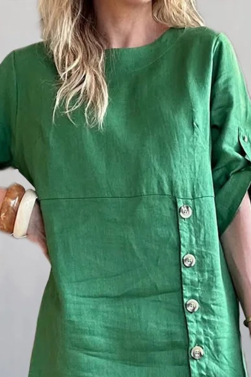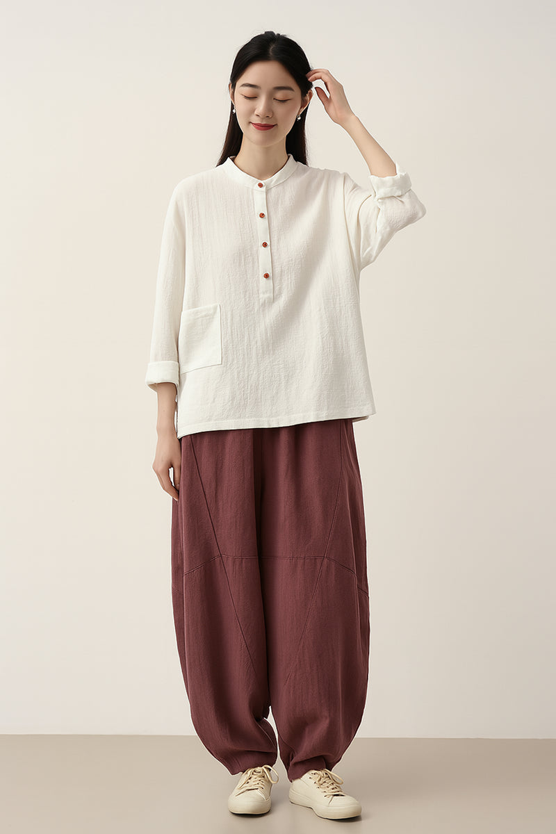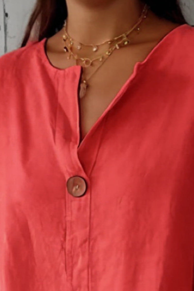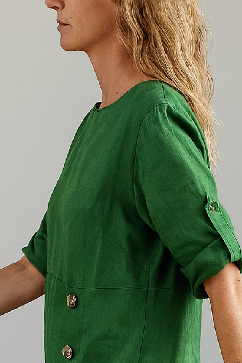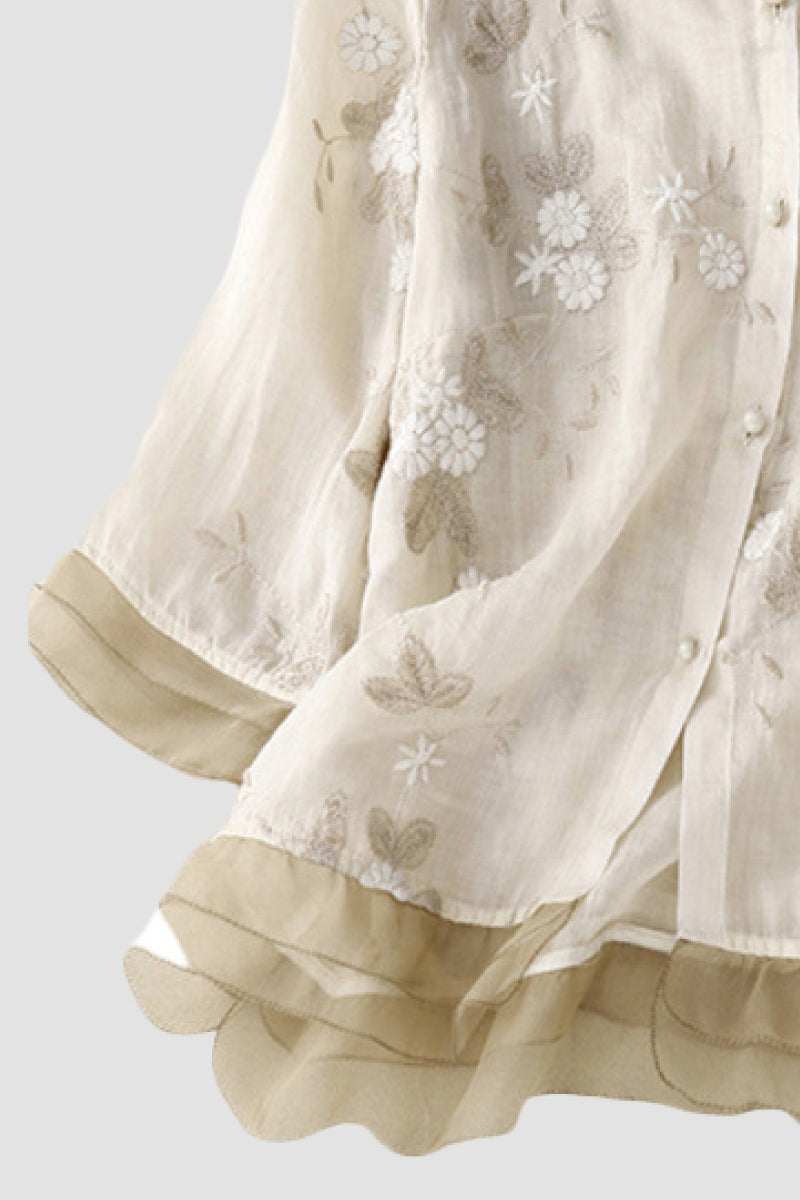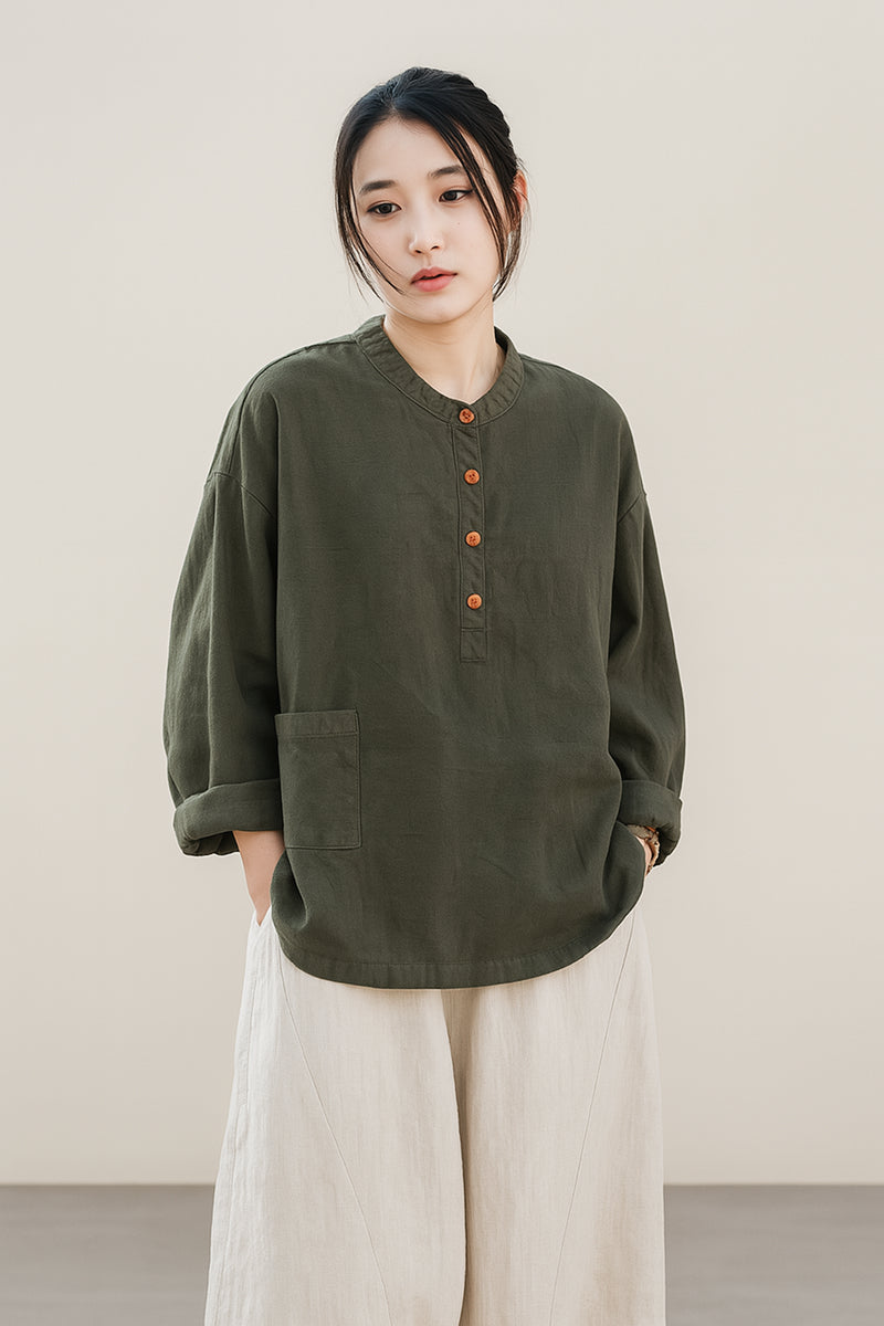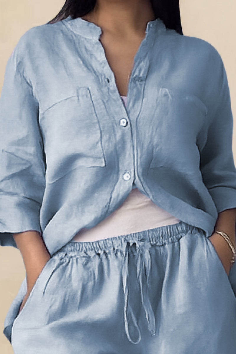 This blouse is everything I hoped it would be and more. The linen feels incredibly light and breathable, but still has that rich, textured quality that makes it feel elevated. I’m 38.5" bust, 32" waist, and 36" hips, and the size L fits perfectly.