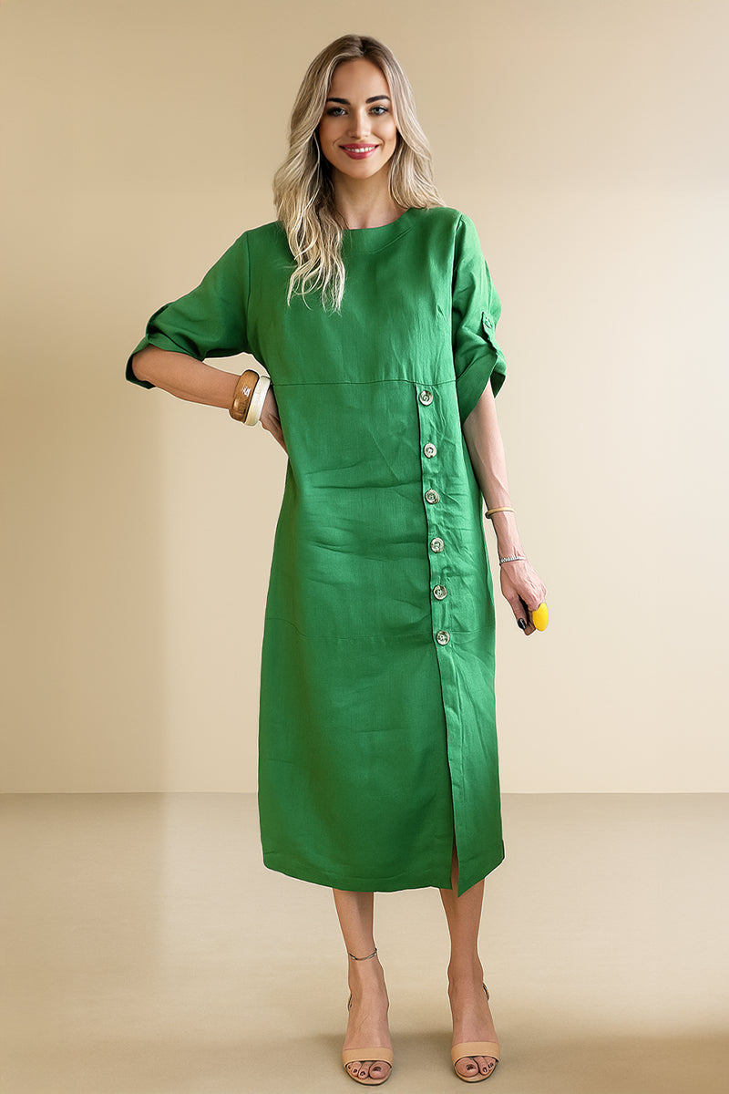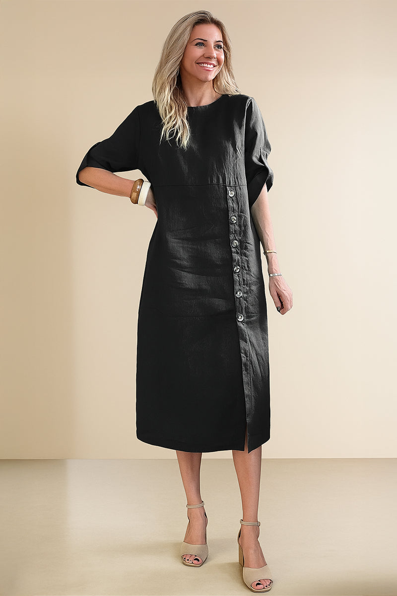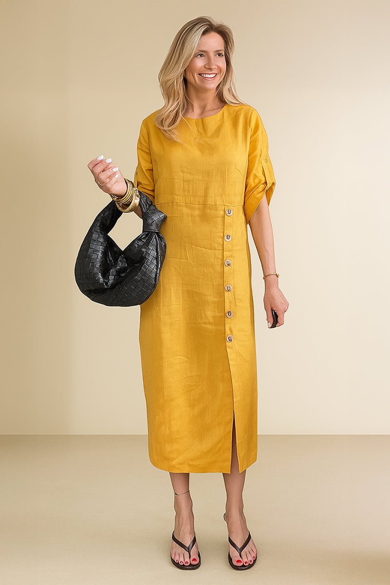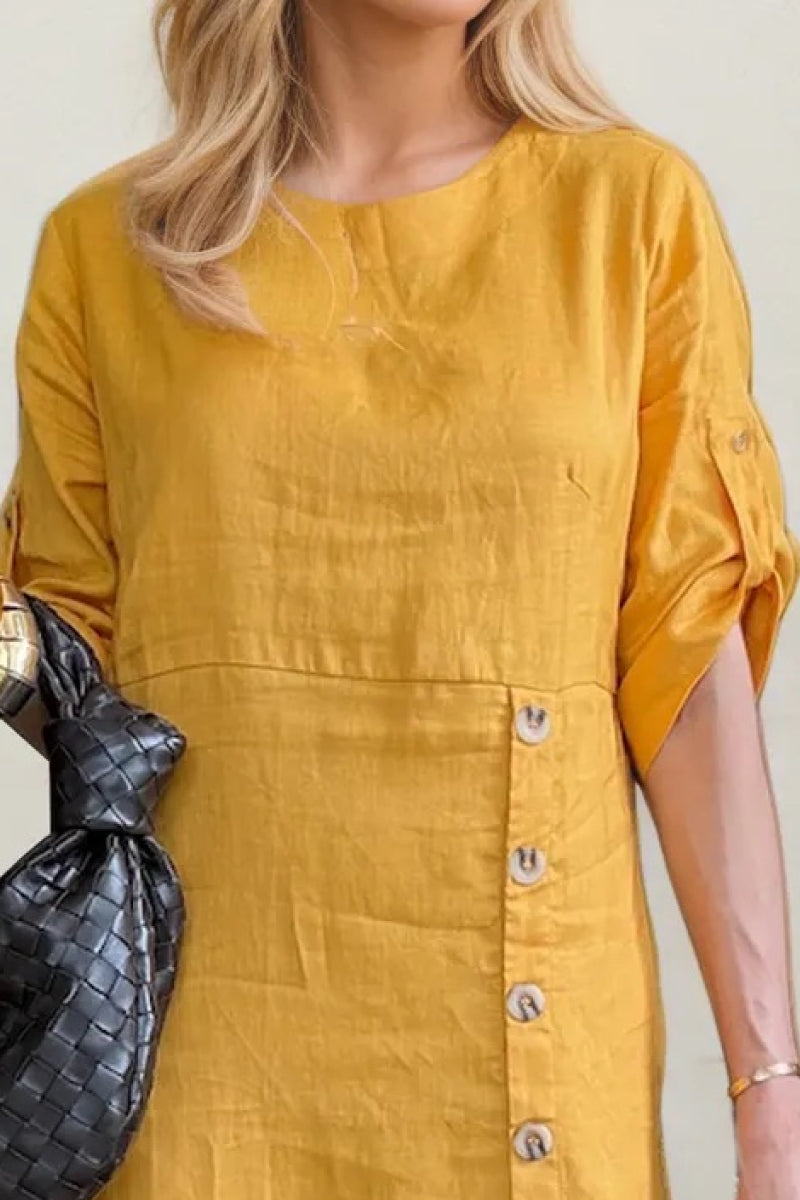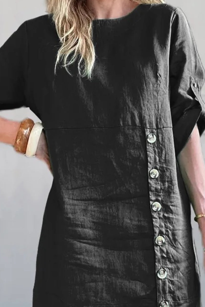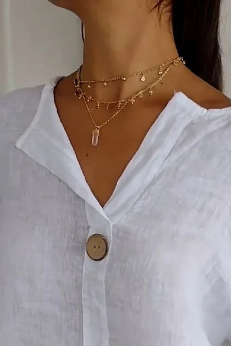 This blouse is everything I hoped it would be and more. The linen feels incredibly light and breathable, but still has that rich, textured quality that makes it feel elevated. I’m 38.5" bust, 32" waist, and 36" hips, and the size L fits perfectly.
